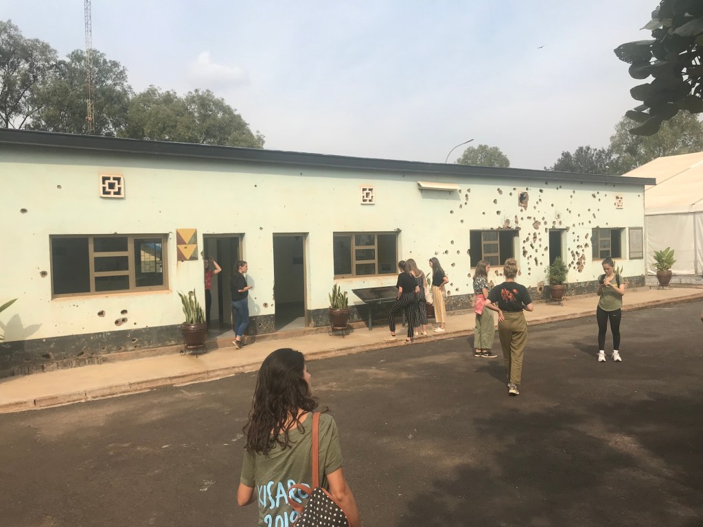 Daarna bezoeken we het moordhuis van de Belgische blauwhelmen. Dat is toch eventjes stil worden. Maar tijdens de genocide zijn natuurlijk vooral veel Rwandezen omgekomen. Van die tragedie worden we ons erg bewust tijdens het bezoek aan het genocidemuseum in Kigali.