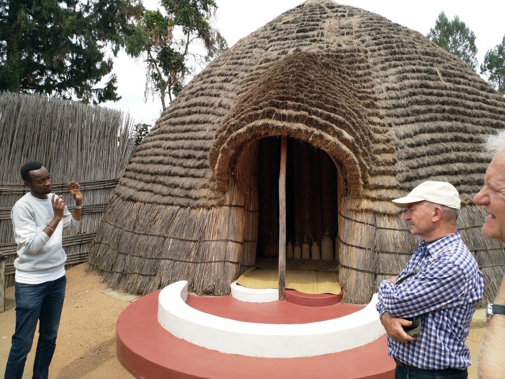 Opstaan om 4u. ’s ochtends en Bye bye Kisaro! We vertrekken voor een tweedaagse excursie door Rwanda. Vanuit het busje genieten we van de opkomende zon en de mooie landschappen. We bezoeken de Mwamipaleizen in Nyanza en leren er over het leven van de Mwami-koningen in hun traditionele hutten en het koningschap voor en na de kolonisatie. Leopold III liet hier een stenen paleis bouwen voor de laatste Mwami-koning. Het traditionele leven is ook het thema in het Etnografisch museum van Butare. Dit gebouw is een ontwerp van de Belgische architect Lode van Pee en een cadeau van Koning Boudewijn aan het volk van Rwanda.