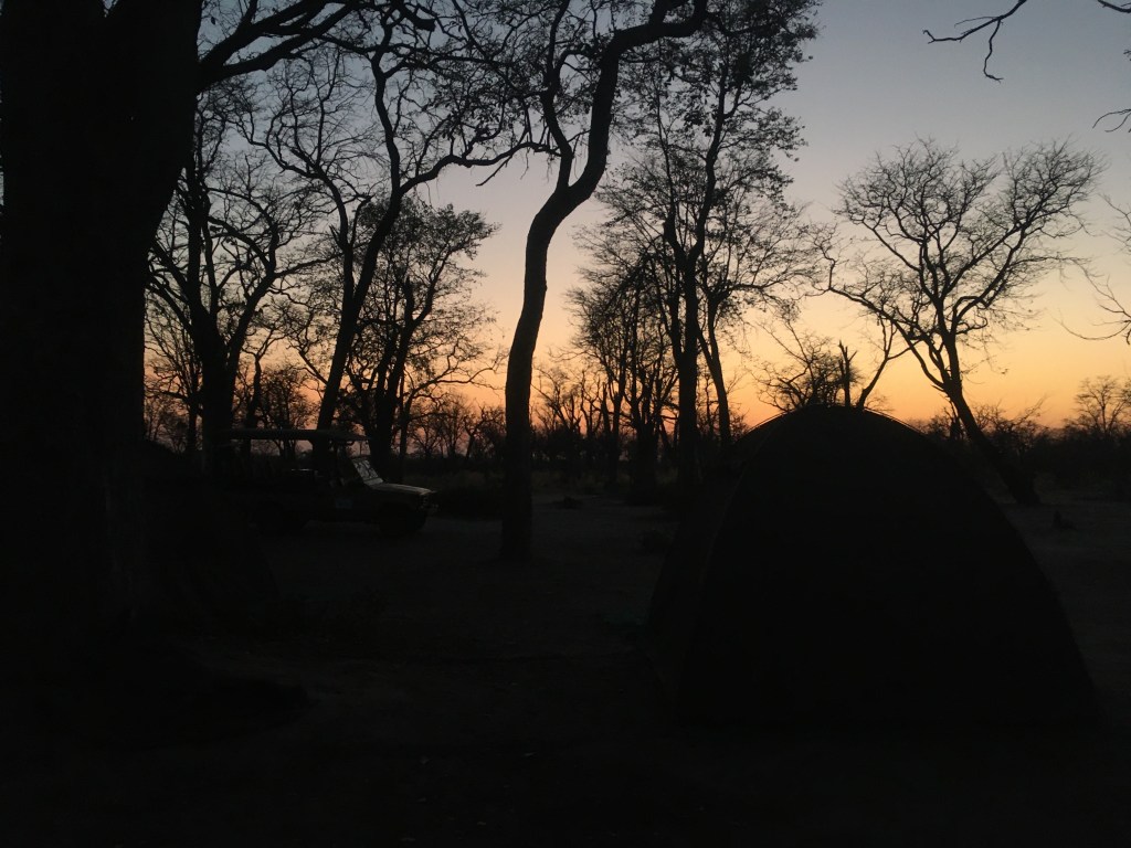 We hebben een nacht wild gekampeerd. Wel kicken als je ’s nachts een nijlpaard voorbij je tentje hoort lopen.