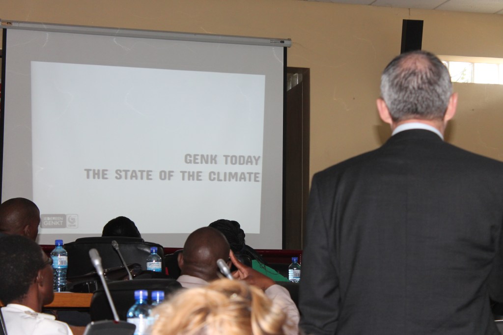 Zoals gezegd is klimaatverandering een nieuw thema in de samenwerkingsovereenkomst. Het Noorden begint de gevolgen van de klimaatopwarming te voelen en moet maatregelen nemen: dat illustreerde burgemeester Dries met de powerpointpresentatie rond de acties (en de resultaten) die Stad Genk op dat vlak onderneemt. Lillian Ntshwarisang van het DMS (Department of Meteorological Services) presenteerde data over het klimaat in Botswana, de vooruitzichten op korte en lange termijn en hoe men daar in Botswana mee wil omgaan. Eén ding is zeker: hoewel het in Botswana ook regent, heeft dit land meer ervaring met extreme droogte. Nu wij meer en meer met klimaatopwarming geconfronteerd worden, kan die ervaring voor ons uiteraard zeer nuttig zijn.