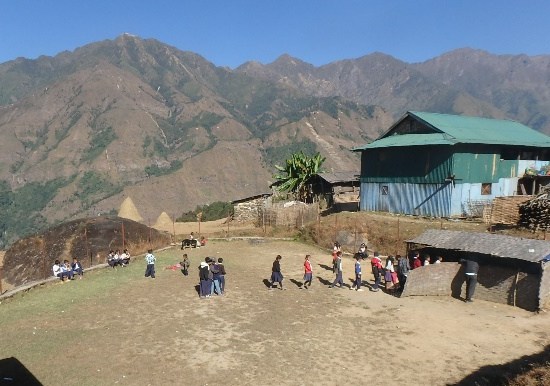De moeilijk bereikbare ligging zorgt er ook voor dat weinig kinderen naar school gaan. Twee uur lopen door moeilijk terrein is voor vele velen een te grote opgave. Slechts twee klasjes met in totaal 25 kinderen vormen het schamele resultaat. Geen wonder dat dit dorp tot nu toe één van de meest armoedige en minst ontwikkelde is van de dorpen die we hier in Nepal al hebben gezien.