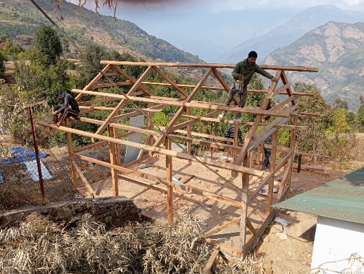 Tot tevredenheid van de kinderen in de school in Mangsima is de vervanging van de bouwvallige ‘kantine’ gestart. Dit bamboemattenstulpje, waar ’s middags de lunch wordt klaargemaakt, maakt plaats voor een meer menselijke schoolomgeving. We streven ernaar om ook drinkbaar water en betere hygiënische omstandigheden te realiseren.