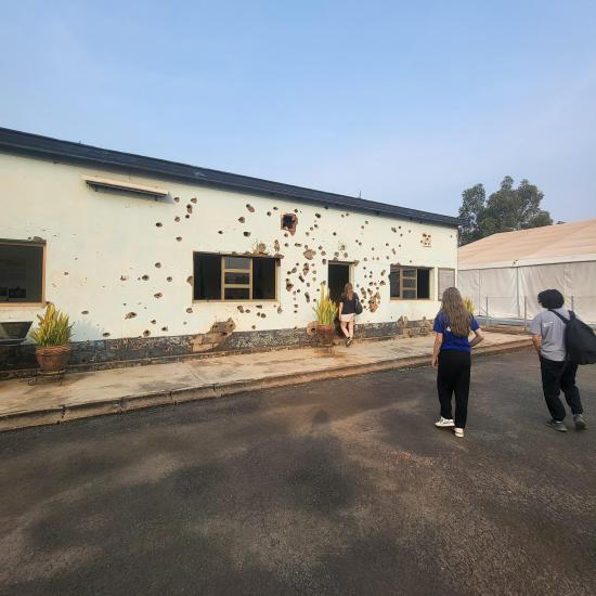 Camp Kigali was de volgende plaats die we mochten bezoeken. Hier werden we allemaal even stil en namen we de informatie in ons op. 30 jaar geleden werden hier 10 Belgische blauwehelmen neergeschoten. Onze leerkracht vertelde ons meer over de gebeurtenissen op 7 april en over de genocide.